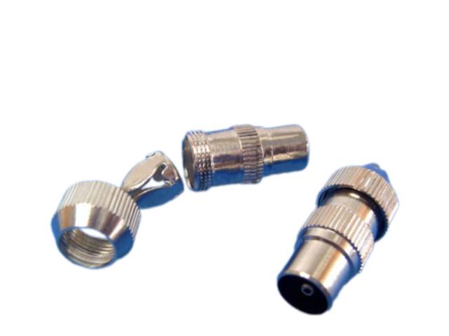 TV/R/CATV 75Ohm. IEC zástrčka(m) kabelová, přímá, šroubovací, kovová