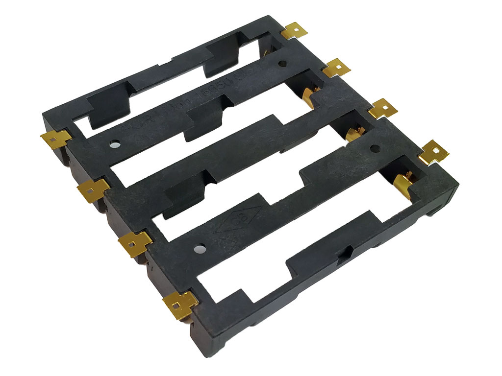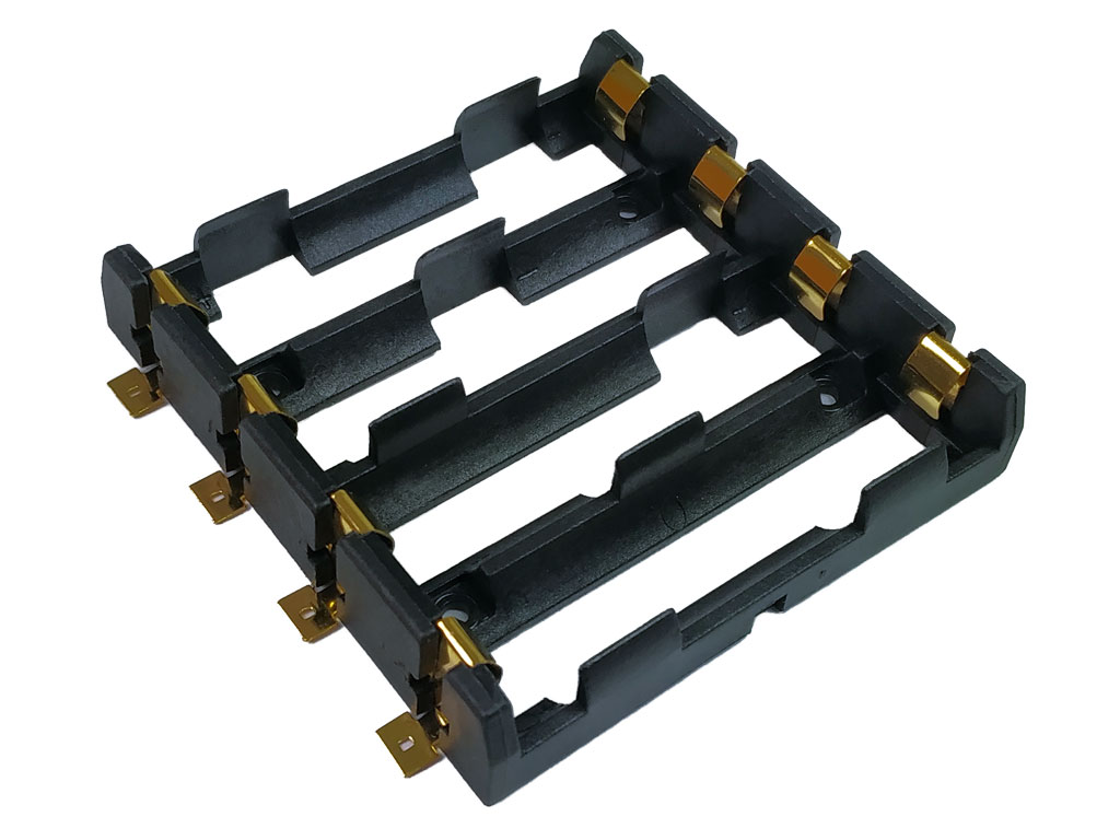 Pouzdro na baterie 4x 18650 vedle sebe samosatné SMD pozlacené vývody, pájecí očka