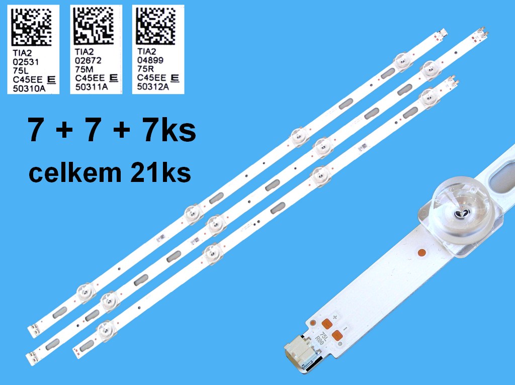 LED podsvit sada Samsung 75CU7172 celkem 21 kusů / LED Backlight BN96-50310A + BN96-50311A + BN96-5012A / XY-MH