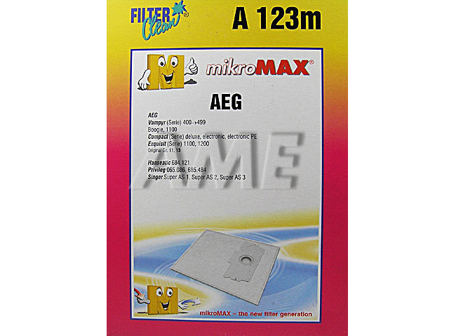 Třívrstvový typ sáčku. Sáčky do vysavače: AEG Vampyr 400>499 ,Boogie, 1100, Compact deluxe, electronic, electronic PE, Exquisit 1100, 1200, HANSEATIC 684.121, PRIVILEG 065.086, 685.484, Singer AS1, Super AS2, Super AS3