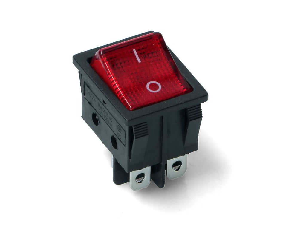 Vypínač kolébkový s podsvitem - červený 230V / 16A KCD4