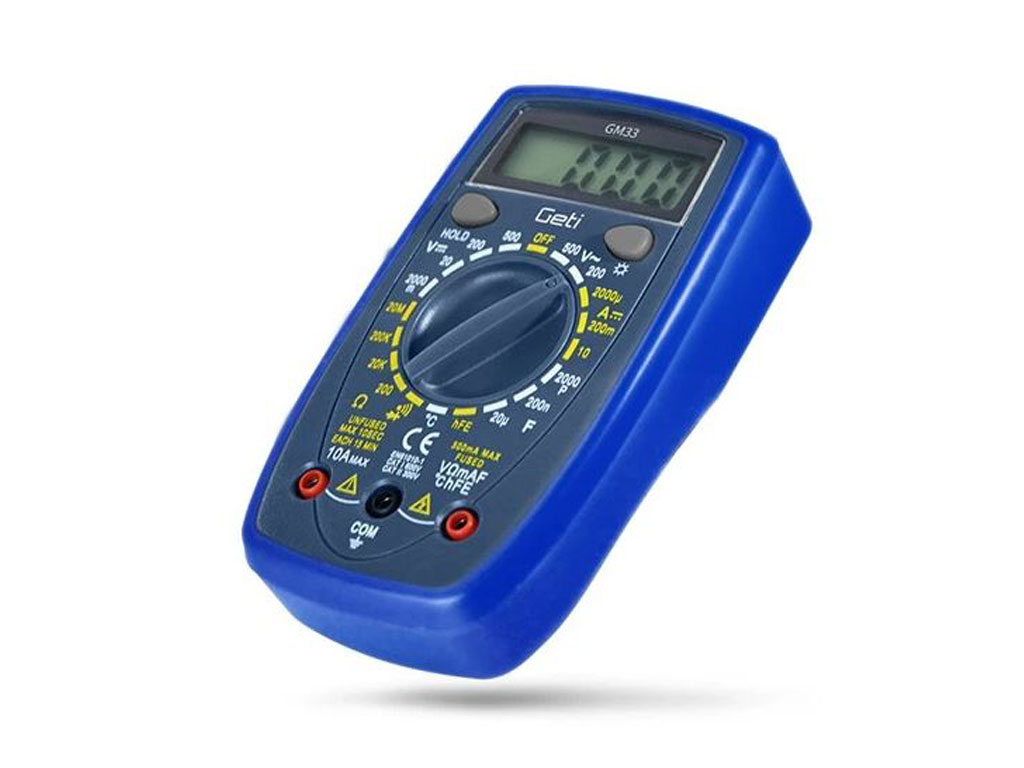 Multimetr GETI GM33A nalezne své uplatnění při měření široké škály elektrických veličin jako jsou například: napětí (DCV a ACV), proud (DCA), odpor, kapacita a mnoho dalších. Přehledný displej doplněný o podsvícení, zajišťuje snadnou a přesnou čitelnost naměřených hodnot i za horších světelných podmínek. Přístroj je také vybaven dalšími praktickými funkcemi, jako je indikace slabé baterie, ochrana proti přetížení, testování diod, měření kontinuity nebo testování tranzistorů, které dodávají multimetru uživatelsky přívětivý charakter, který díky kompaktním rozměrům a nízké hmotnosti zaručuje snadnou manipulaci i v těžko přístupných místech. Všechny tyto vlastnosti z tohoto přístroje činí všestranného pomocníka, nejen v dílnách, ale i domácnostech.