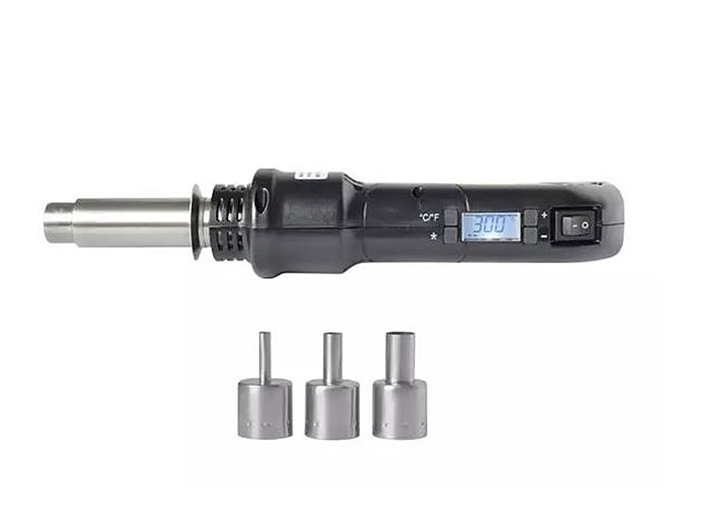 Tato příruční horkovzdušná vyfoukávačka ZD-8907 má teplotní rozsah 200°C - 500 °C. Díky tomu se skvěle hodí na smršťovací hadičky, k odpájení citlivých obvodů SMD jako SOIC,CHIP, PLCC, BGA a pod. Chrání obvody před poškozením statickou elektřinou. součástek Uplatní se ale i v řadě dalších oblastí použití, u nichž je důležitý koncentrovaný tok horkého vzduchu, např. při čištění 3D tiskáren. Teplotu lze nastavit na LCD displeji. Množství vzduchu je možné regulovat pomocí různých hrotů, které jsou součástí dodávky. Pero je vybaveno dvoukomponentní rukojetí s protiskluzovou gumou, která nabízí větší pohodlí a usnadňuje manipulaci.